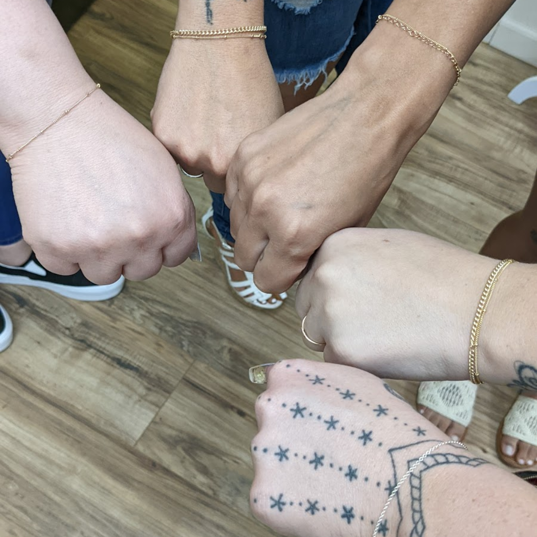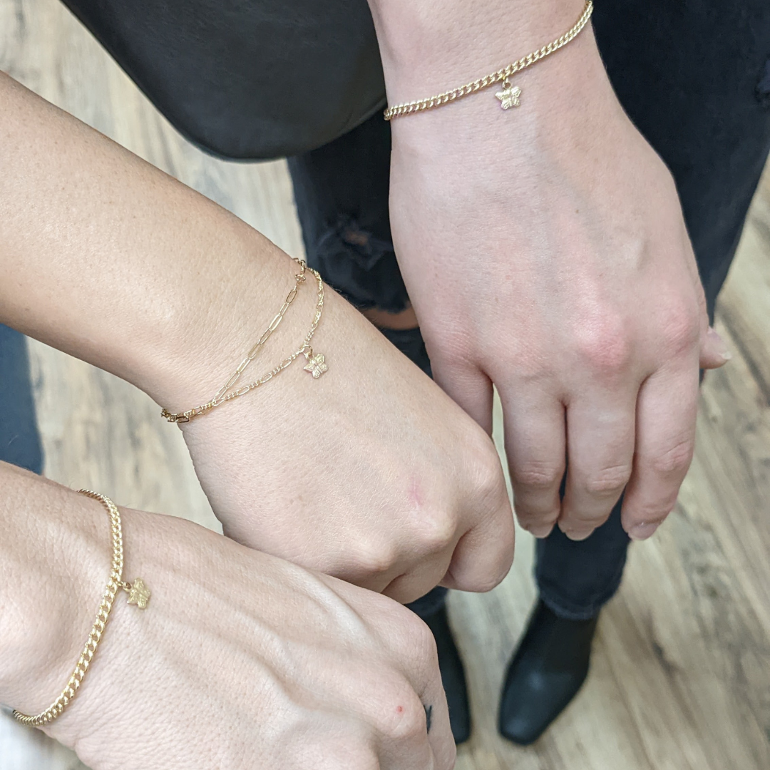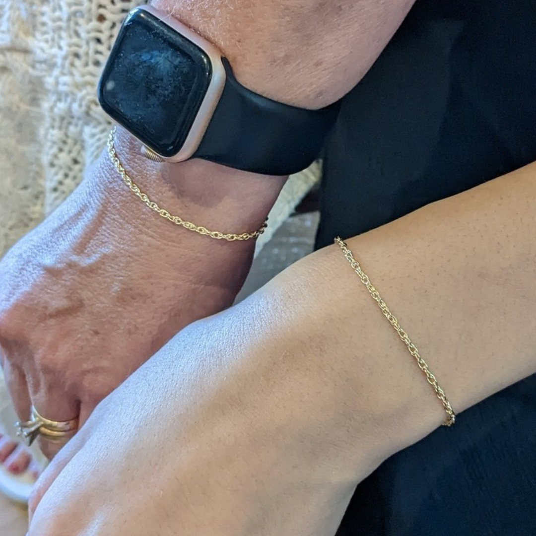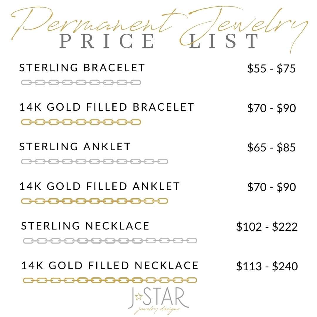 Permanent jewelry (also known as forever bracelets, infinity jewelry, welded jewelry, zap jewelry, etc.) is delicate-yet-durable chain bracelets, anklets, or necklaces that are closed with a precision jewelry welding tool instead of a traditional clasp. They are custom fitted, painless to attach, and can be customized just to your liking!