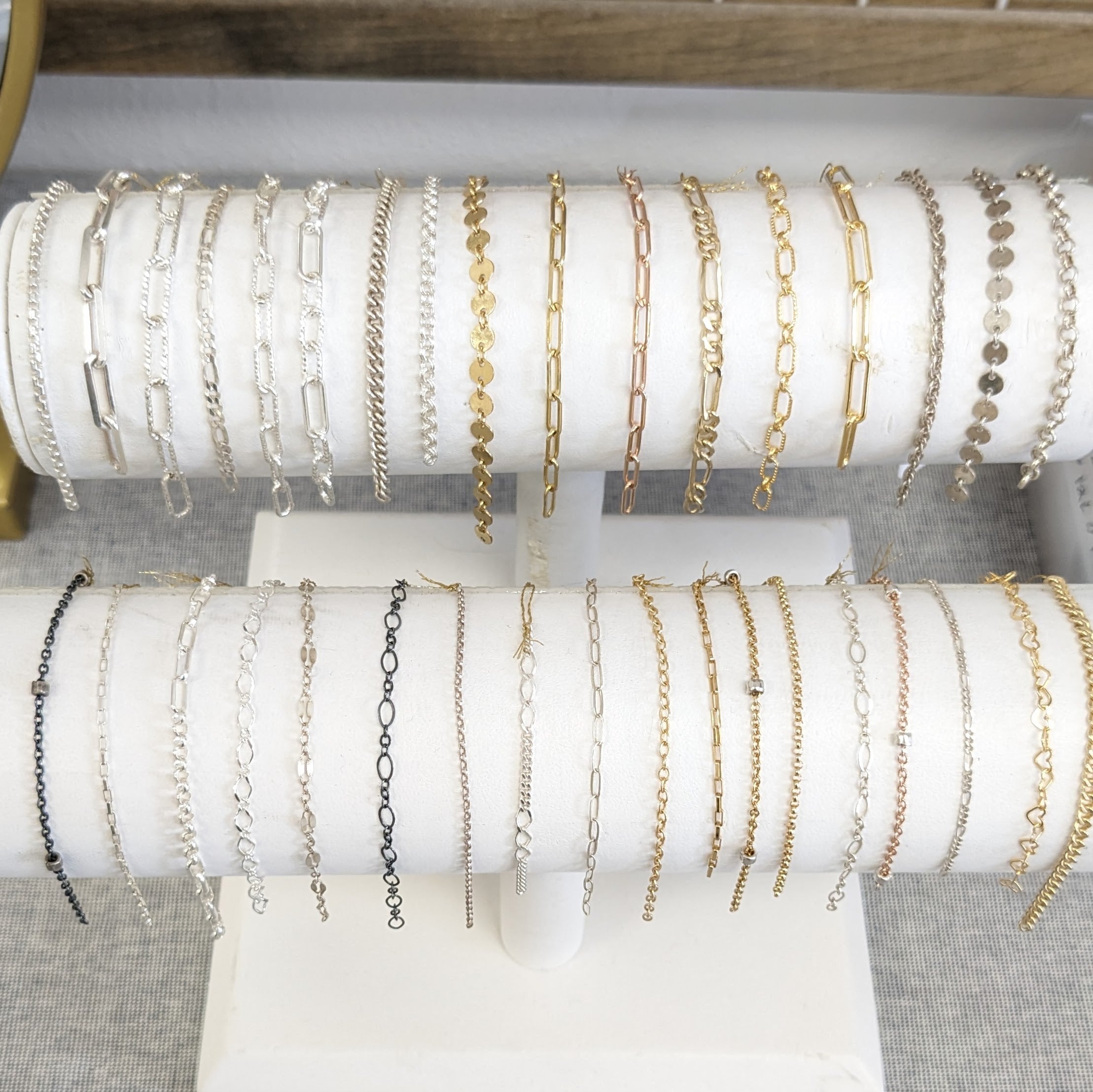 Any permanent jewelry chain can be made into a custom-fitted bracelet, anklet, or necklace with a traditional clasp for an additional $5!